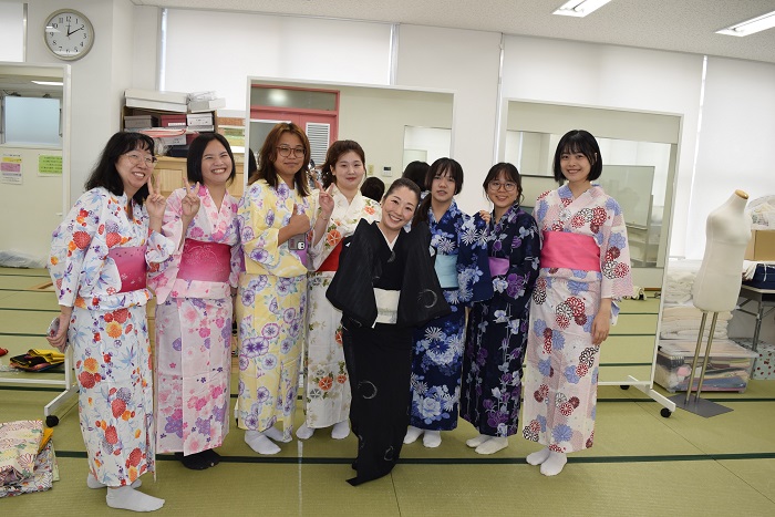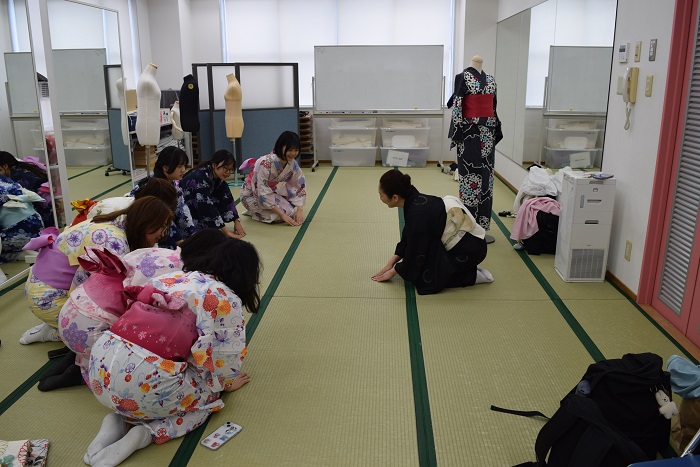 着つけを教わった後は、浴衣のたたみ方、浴衣を着て写真撮影するときの