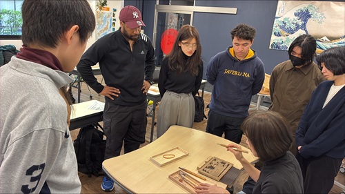 去年に引き続き、岡本銘木店様が来校し