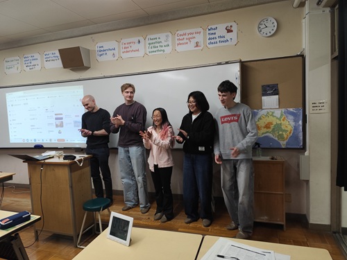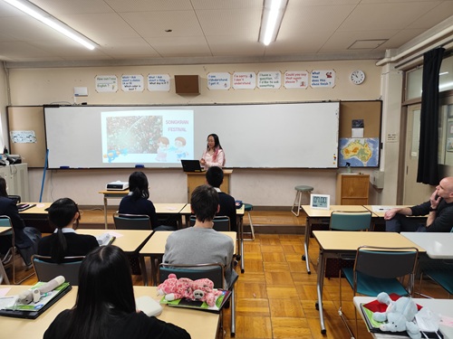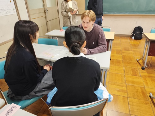 授業が終わっても、休憩時間には多くの高校生が留学生に質問したり話しかけたりしており、留学生も楽しそうに応じていました。帰り際には、教室から見送っていただき、留学生からも「また機会があれば、こうした交流にぜひ参加したい」と笑顔で話してくれました。